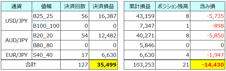 単月の決済損益が、35,499円と初の3万円超えとなりました。投資資金200万円にしては、上出来と言えるでしょう。